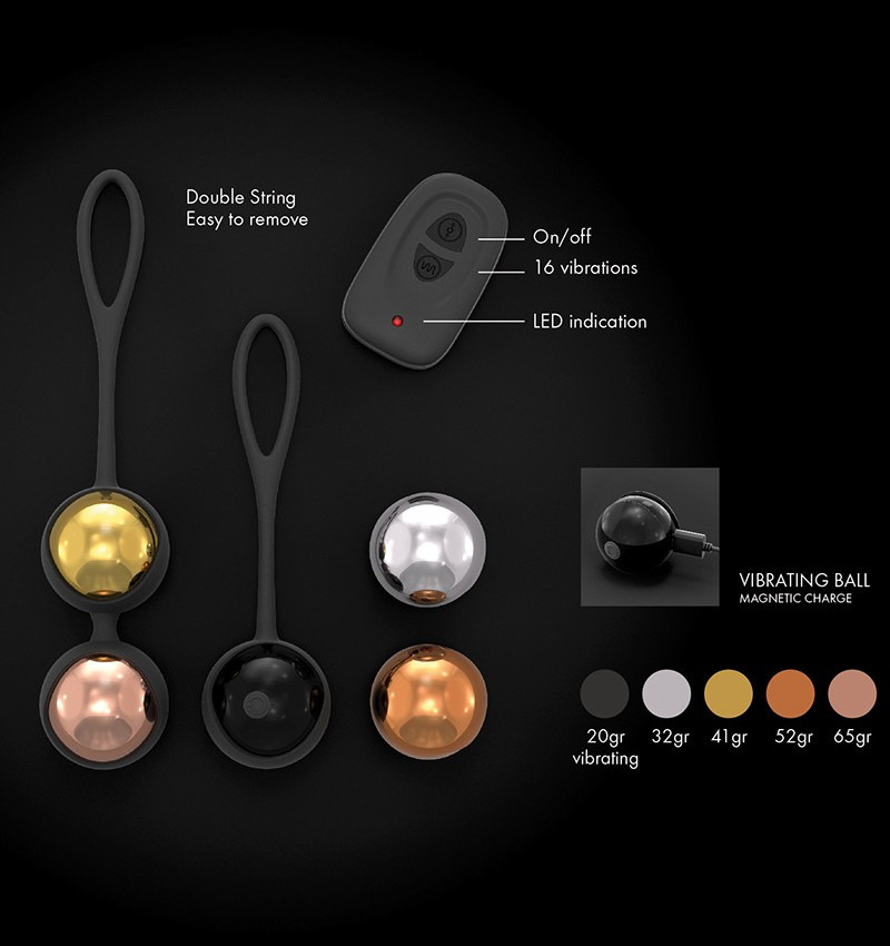 Kuličky s kovovým vzhledem mají uvnitř pohyblivé závaží, které při sebemenším pohybu vytváří příjemné chvění a pomáhá k efektivnějšímu tréninku, černá kulička ukrývá vibrační motorek.