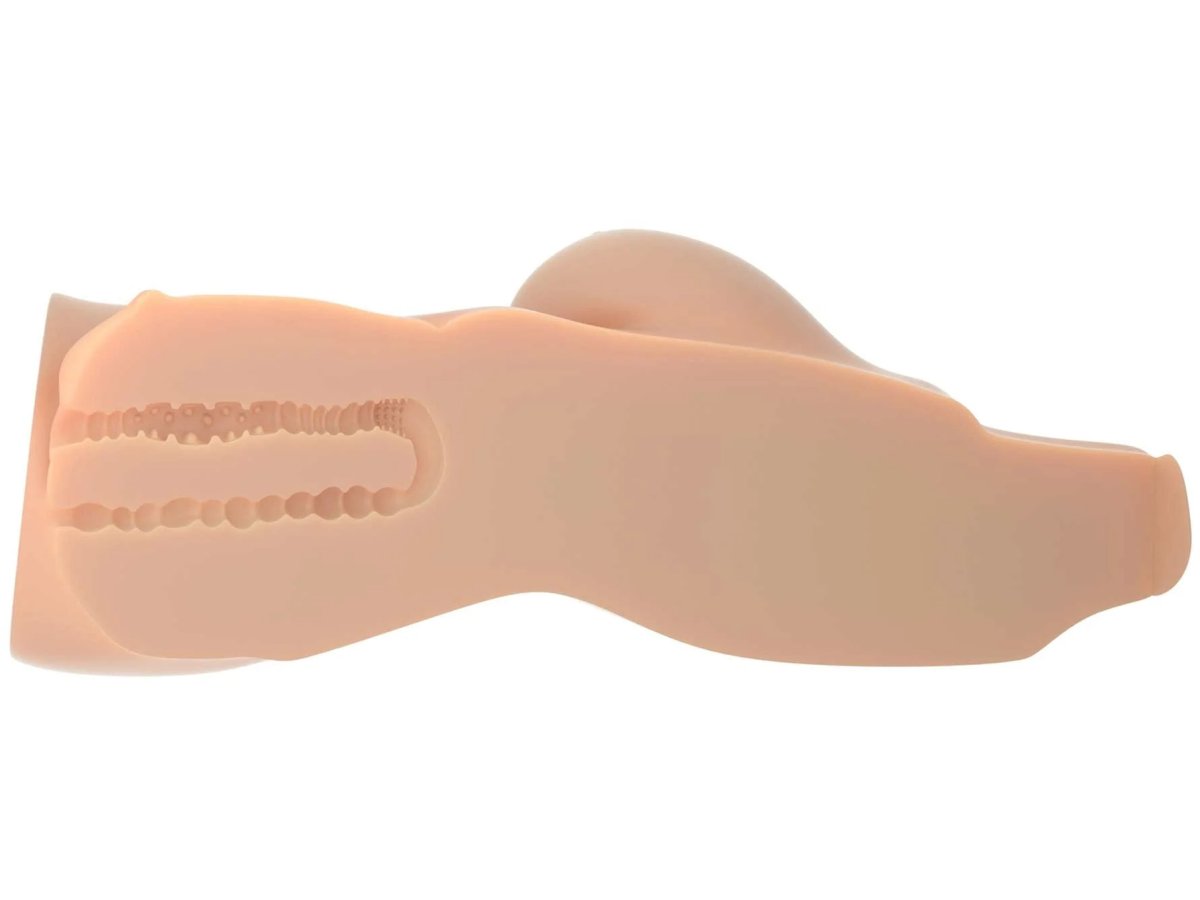 Za úzkými otvory se ukrývají tunýlky se stimulačními výstupky a žebrováním pro intenzivnější potěšení. Oba otvory jsou snadno roztažitelné – bez problému pojmou téměř všechny průměry penisů.