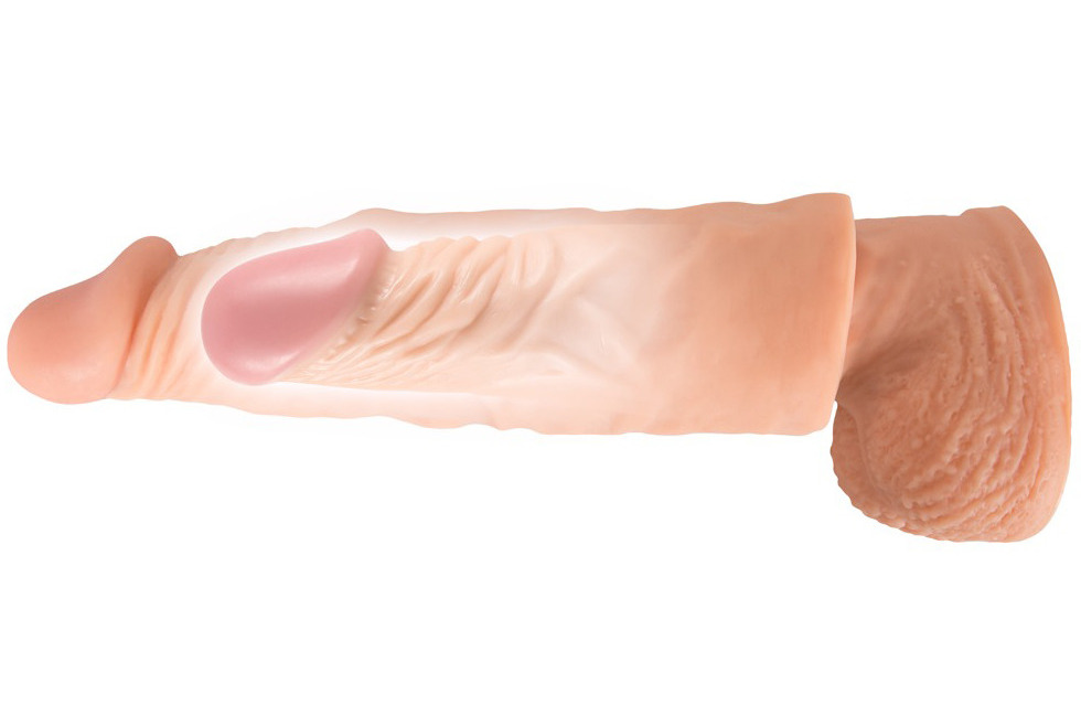 Návlek snadno a rychle zvětší penis – přidá 3 cm do délky a cca 2 cm do šířky. Je vyrobený z realistického materiálu a má hezky vymodelovaný žalud i žilkování.